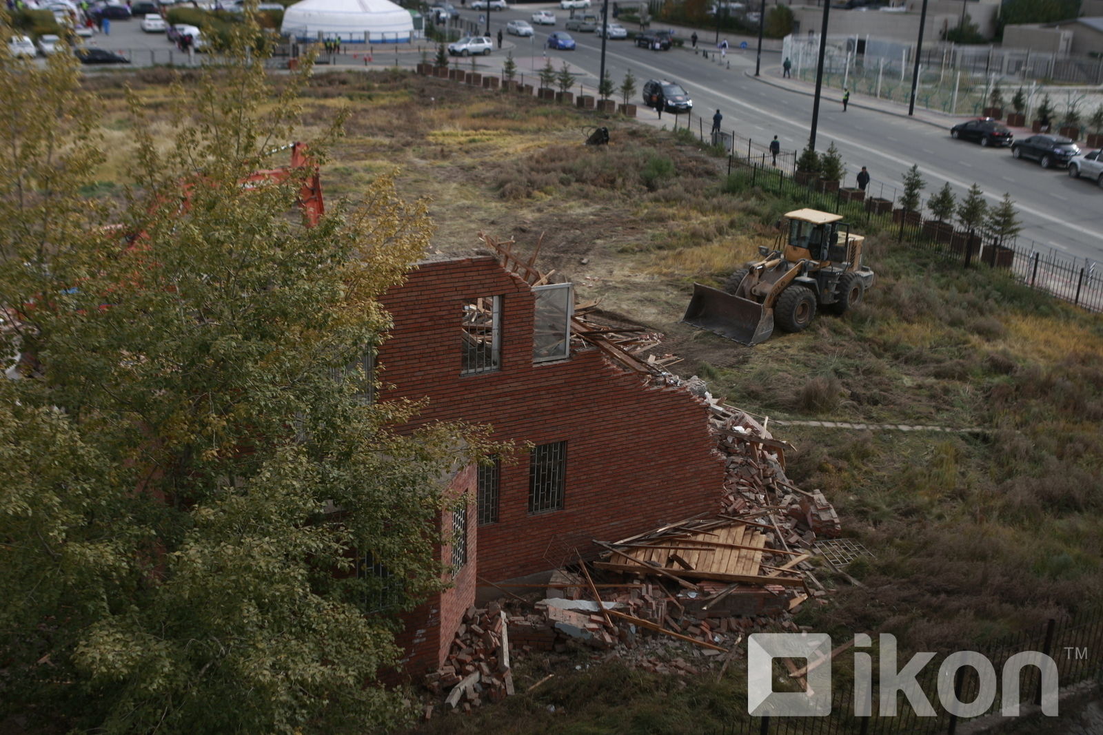 Зураг: Чойжин ламын музейн хашаан доторх 2 давхар барилгыг албадан буулгалаа. 2018.09.26)