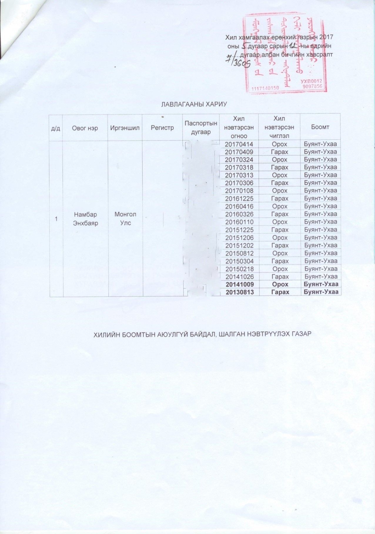 Монгол Ардын Хувьсгалт Намаас Монгол Улсын Ерөнхийлөгчийн 2017 оны сонгуульд нэрийг нь дэвшүүлсэн Н.Энхбаяр нь хилийн албаны тодорхойлолтыг Сонгуулийн Ерөнхий Хороонд ирүүлээгүй буюу нэр дэвшигчийн талаарх баримт бичгийг дутуу ирүүлсэн тул Сонгуулийн тухай хуулийн 142 дугаар зүйлийн 142.3-т заасны дагуу тодорхойлолтыг Хил хамгаалах ерөнхий газраас Сонгуулийн Ерөнхий Хороо гаргуулан авсан болно.
