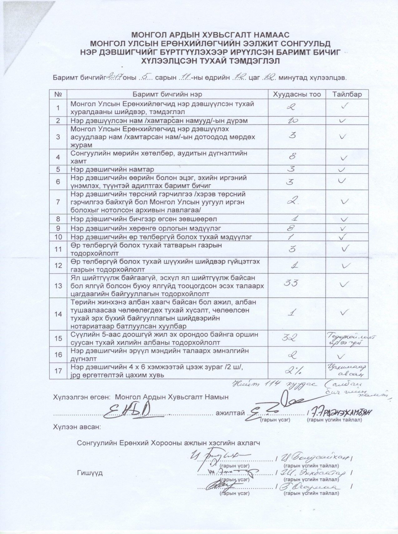 Нэг. НЭР ДЭВШИГЧИЙН ХОЛБОГДОХ БИЧИГ БАРИМТЫН БҮРДЭЛ ДУТУУ