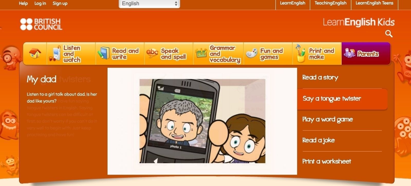 Бага насны хүүхдүүдэд англи хэлний суурь мэдлэг олгох зорилготой хичээлүүд. Хүүхдүүдэд сонирхолтой байлгах үүднээс дүрс бичлэгтэй, тоглоом хэлбэрийн хичээлүүдийг оруулж өгсөн байгаа ба эцэг эхчүүд нь хамтран суралцахад тохиромжтой. Тухайлбал энэ сайтад олон тооны богино өгүүллэгүүдийг видео болон текст хэлбэрээр хамт байрлуулсан нь сонсголын дасгал хийхэд тун тохиромжтой болгосон байна. САЙТЫН ХОЛБООС