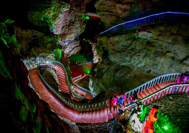 Бидний үзэж аялах зүйл үүгээр зогсохгүй энэхүү аялал жуулчлалын цогцолбор газрын бас нэгэн гайхамшиг болсон дэлхийн геологийн паркийн салшгүй нэг хэсэг Шар луун агуйгаар аяллаа үргэлжлүүлнэ. Энэхүү агуй нь 2 давхар хуурай болон усан агуйгаас бүрдсэн байгалийн өвөрмөц тогтцыг хүний оюуны сэтгэн бодолтыг бүтээн байгуулалттай нь хослуулсан 13км үргэлжлэх 1 усан сан, 2 гол, 3 газар доорх хүрхрээ 4 цөөрөм бүхий 13 том танхимаас бүрдсэн бас нэг гайхамшигт ертөнц гэж хэлж болно.
