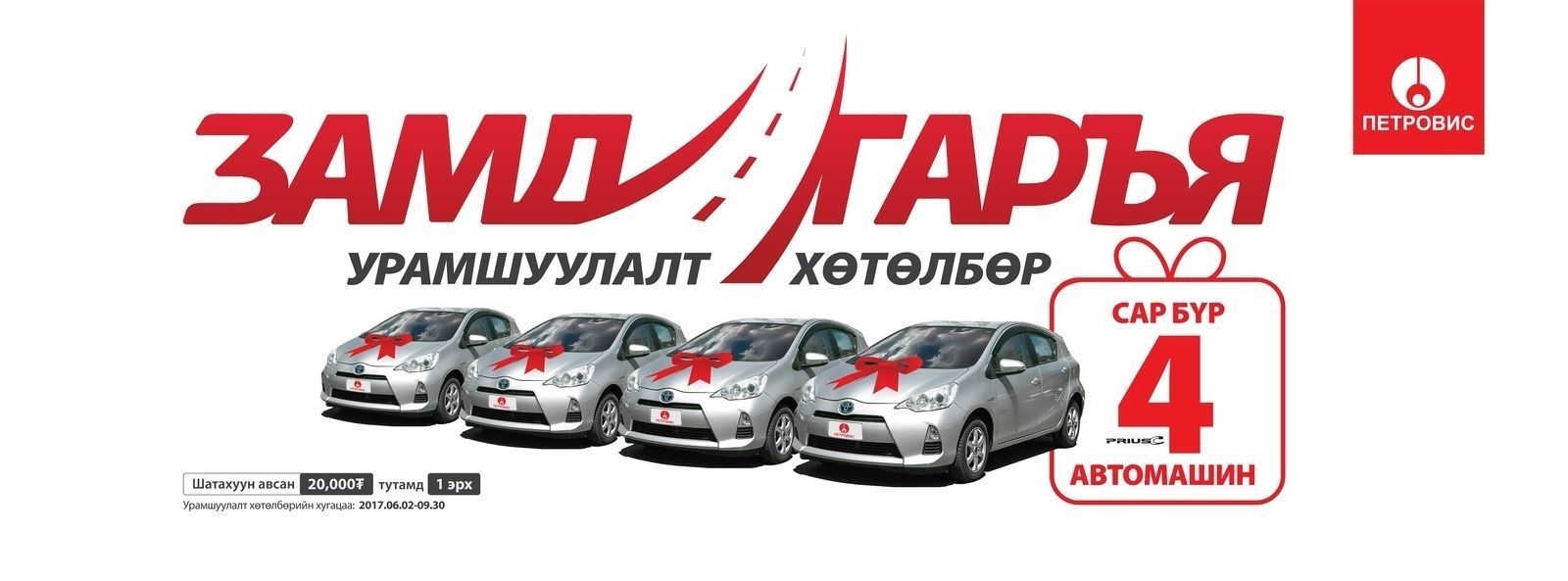 Монгол орон даяар бүх аймаг, суманд байрлах 400 гаруй Петровисийн шатахуун түгээх станцаас шатахуун авсан 20,000 төгрөг тутамд “Замд гаръя” урамшуулалд оролцох 1 эрхтэй болно.