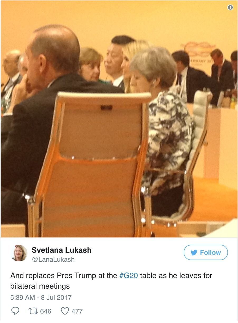 Их 20-ын орнуудын удирдагч нарын нэгэн хурлыг АНУ-ын ерөнхийлөгч Дональд Трамп алгасах болсны дараа түүний суудалд охин Иванка нь сууж орлосон явдал гарчээ.