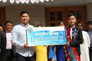 Дорнын их найрагч Ренчиний Чойномын зээ хүү О.Энх-Амгаланд Отгонтэнгэр Их сургууль 12 сая төгрөгийн тэтгэлэг олголоо.