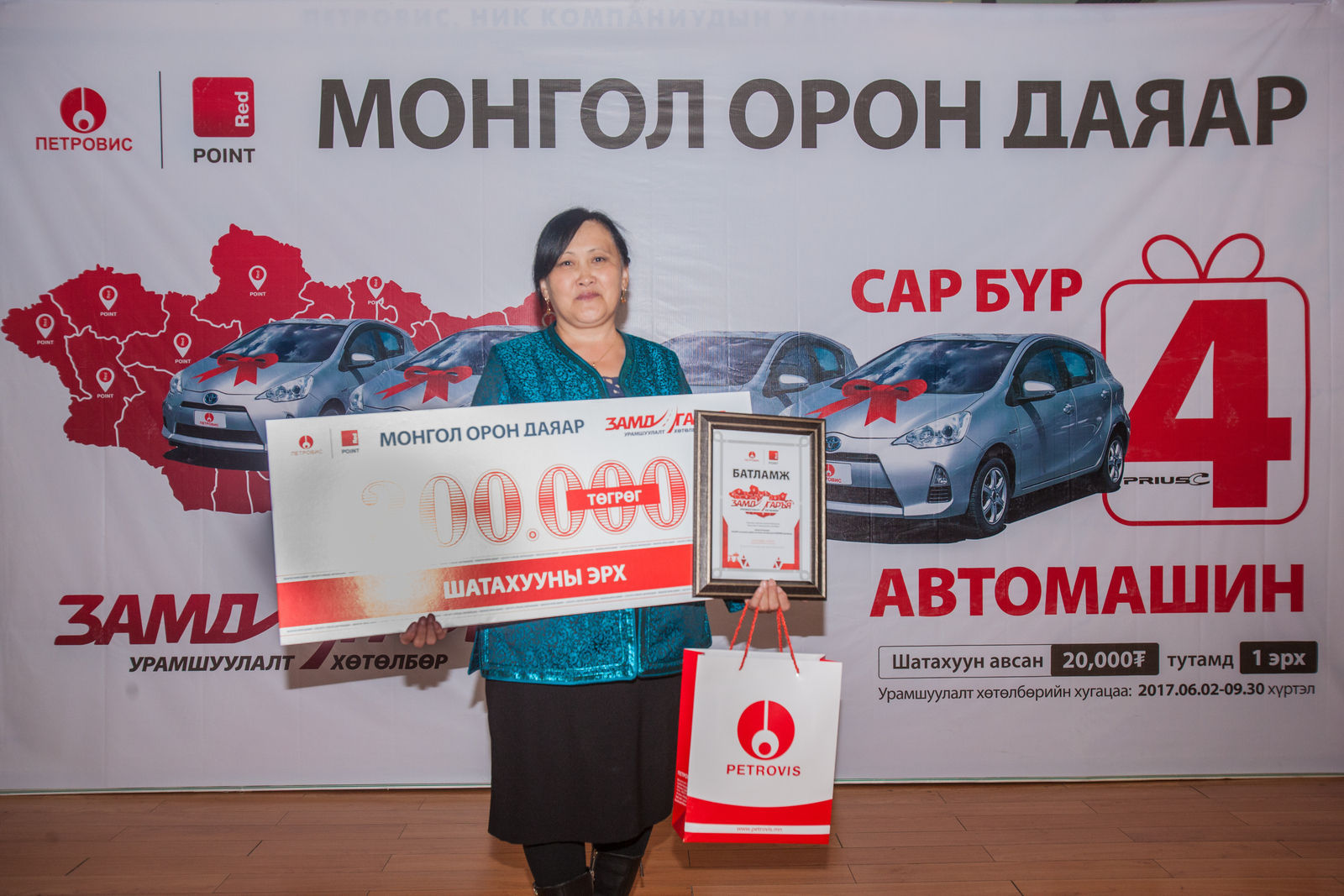Би сүүлийн 10 жилийн турш байнга Петровисоос шатахуунаа авч байна. Ийм сайхан урамшуулалт хөтөлбөр зарлахад нь маш таатай хүлээж авсан. Би ямар ч сугалаанаас юу ч хожиж байгаагүй. Тэгсэн ингээд машинтай болно гэдэг сайхан байдаг юм байна. Би одоо PRIUS 20 унадаг л даа.