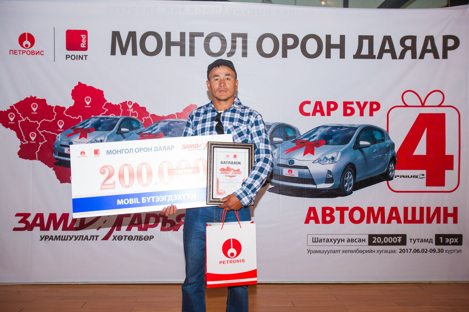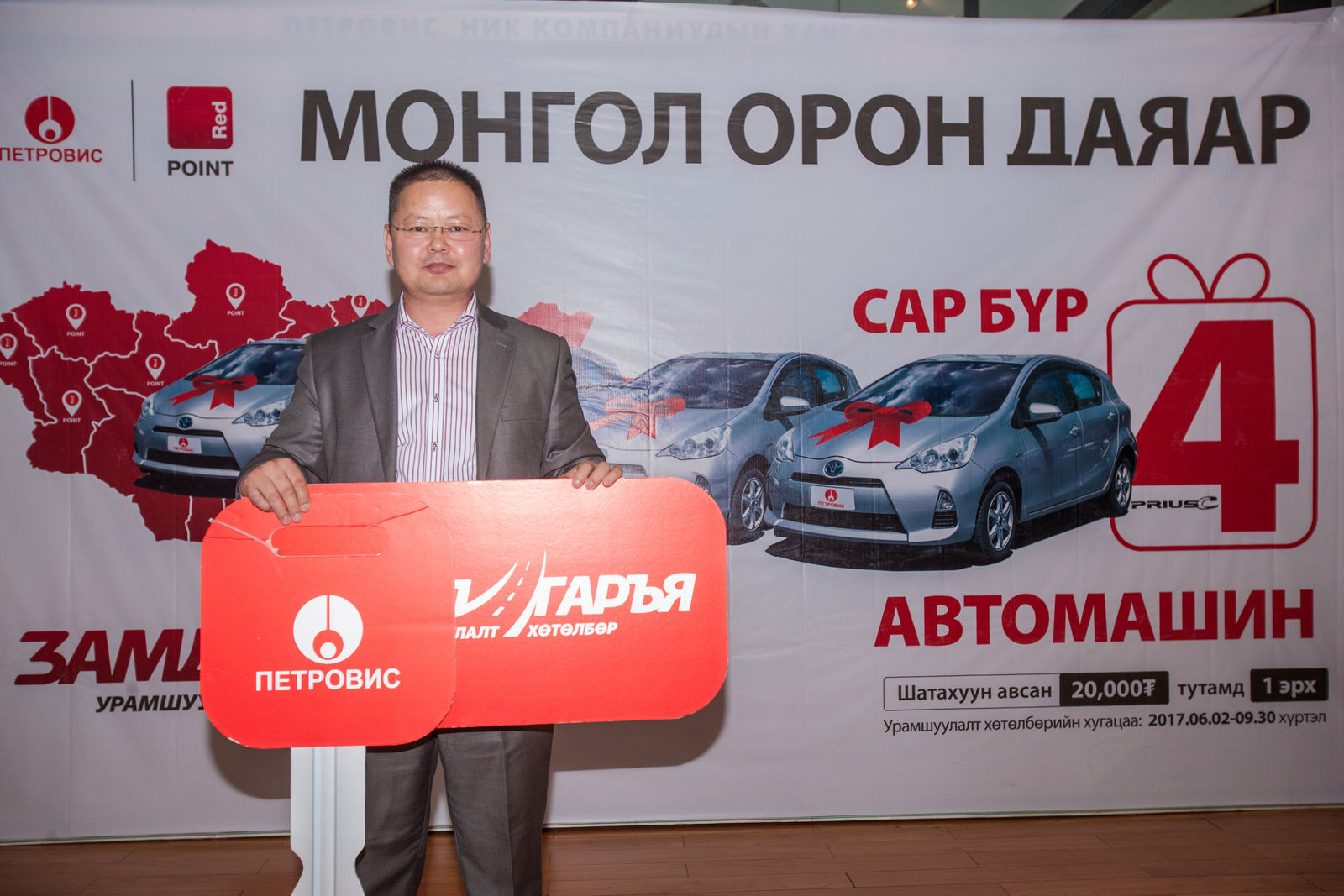 Дөрөв дэх машины эзнээр Хөвсгөл аймгийн Хатгалын иргэн тодорсон юм. Петровис группын хамт олон PRIUS C автомашиныг нь тун удахгүй гардуулж өгөх болно.