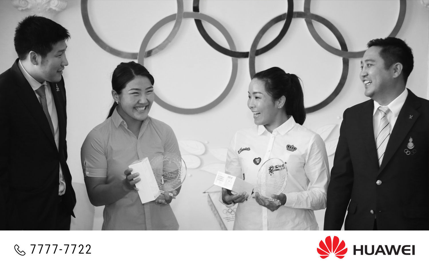 Дэлхийн ухаалаг утасны зах зээлд борлуулалтаараа тэргүүлж буй “Huawei” компанийн шинэ загварын P10 гар утсаар Монголын Үндэсний Олимпын Хорооны сарын шилдэг тамирчин болсон Д.Сумъяа, П.Орхон нарыг шагнаж, амжилтыг нь мялаажээ. Тус бэлгийг Huawei-ийн монгол дахь албан ёсны төлөөлөгчийн газар Huawei Technologies LLC төлөөлөл хүрэлцэн ирж, гардуулав.