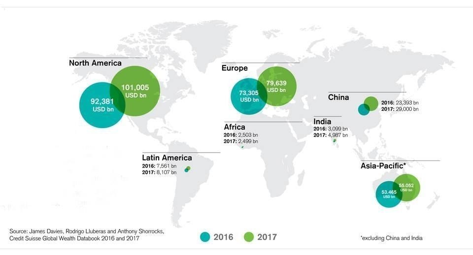 Дэлхийн нийт баялаг 280 их наяд ам.доллар хүрсэн нь 2007 оны эдийн засгийн хямралын өмнөх үеэс 27 хувиар өссөн үзүүлэлт болж байна. Зөвхөн сүүлийн нэг жилд л гэхэд нийт баялгийн хэмжээ 6.4 хувиар өссөн аж. Энэ нь дэлхийн хүн амын өсөлтөөс хурдан байгаа тул нэг хүнд ногдох баялгийн хэмжээ өдгөө 56,540 ам.доллар хүрээд байна.