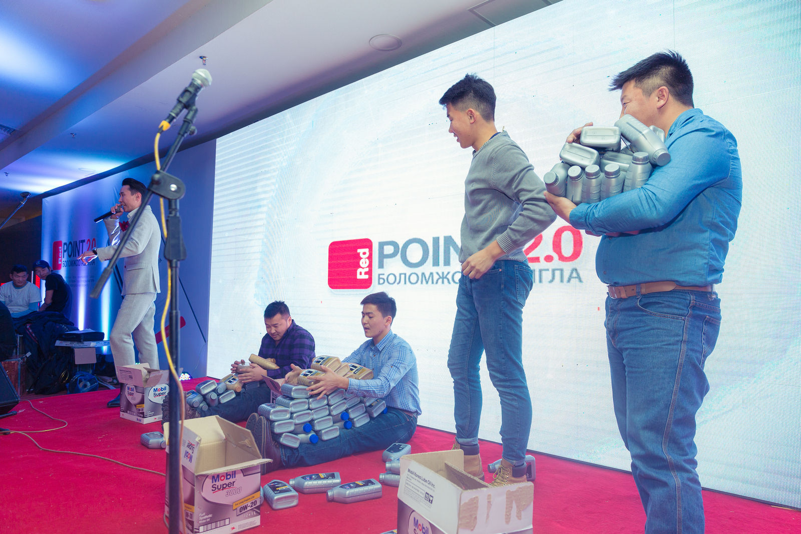Оролцогчид маань хөгжилтэй тэмцээнүүдэд оролцсоны нэг нь “Хэн өөртөө хамгийн их Мобил шингээж чадах вэ” уралдаан байлаа. Ялагч маань газар сууж байгаад хөлөн дээрээ Мобил тосыг өрснөөр хамгийн олныг тогтоож, Мобил брэндийн хөдөлгүүрийн тосыг бэлгэнд авсан юм.