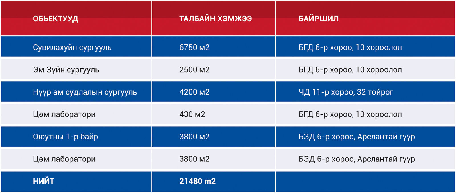 Улсад хүлээлгэн өгөхөөр төлөвлөж буй АШУҮИС-ийн объектууд: