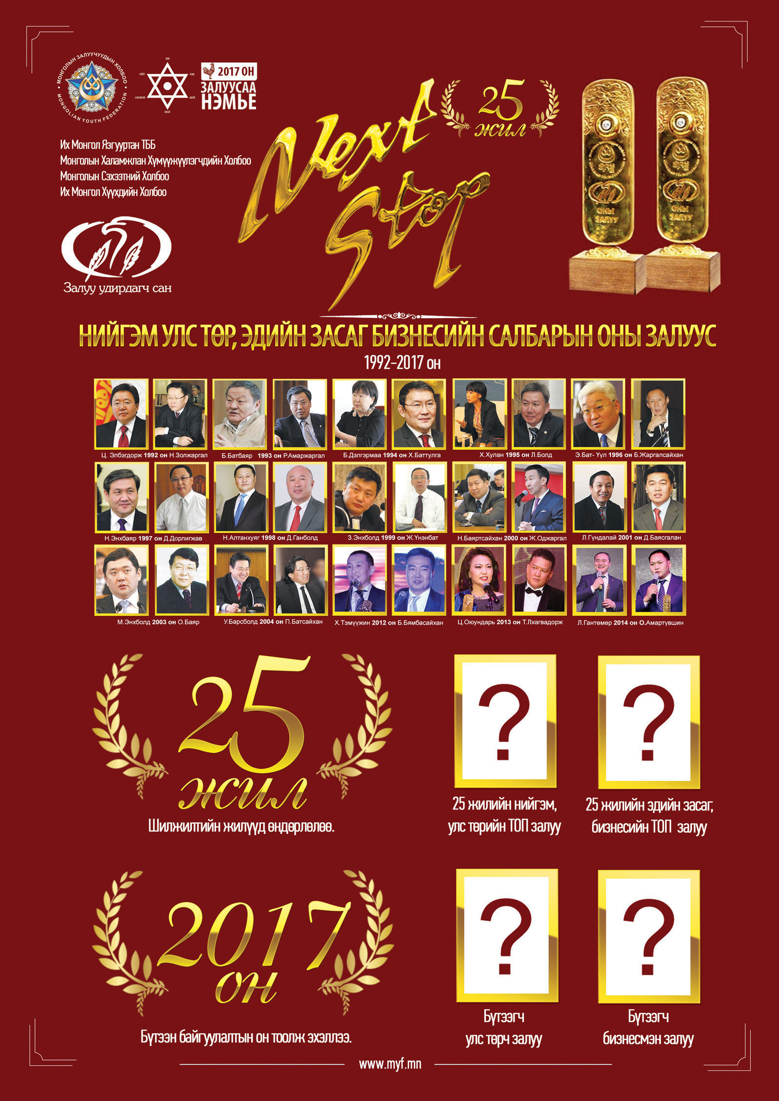 Монголын Залуучуудын Холбооноос шалгарсан оны төгсгөлд нийгэм, улстөр, эдийн засаг бизнесийн шилдэг залуу гэж шалгаруулдаг уламжлалтай. Харин шалгарсан залуус нь ирж буй шинэ ондоо багтаж Монгол Улсын хөгжлийн талаарх өөрийн санал санаачлага бүхий илтгэлийг тавьдаг.
