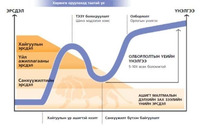 Харин тооцоо нь аль ч том банкны сорилт шалгуурыг давах хэмжээнд хийсэн байдаг учир хэрэв тэр тооцоо эдийн засгийн үр өгөөжтэй гэсэн дүгнэлттэй бол хөрөнгө босгоход саадгүй. Үнэндээ хөрөнгө оруулалтын банк их хэмжээгээр мөнгө хадгалдаг газар биш л дээ. Жишээ нь Таван толгойн төслийг хэрэгжүүлэхэд шаардлагатай хэдэн тэрбум долларын төслийн тооцоо хангалттай түвшинд хийсэн нь банкны судалгаагаар батлагдлаа гэж үзье. Тэгвэл банк цааш нөгөө жинхэнэ хур баячууд эсвэл том том хуримтлалын сангууд руу ханддаг. Сингапур улсын төрийн мэдлийн хуримтлалын сан Temasek эсвэл Канадын тэтгээрийн сан гэх мэт ард түмнийхээ хуримтлалыг улам баяжуулахаар зориулагдсан байгууллагууд удаан хугацаанд үр ашгаа байнга өгөх уул уурхайн төслүүд рүү орохоос буцдаггүй. Хөрөнгө оруулалтын олон сайхан жишээ дурьдаж болох боловч дэлхийг доргиосон нэгэн том хайгуулын тухай сонирхуулъя. 1995 онд Канадын хөрөнгийн биржид Bre-X компани Индонезид хоёр жил хийсэн хайгуулын үр дүнгээрээ асар том хэмжээний алтны нөөцтэй орд газар илрүүлснээ зарласан юм.
