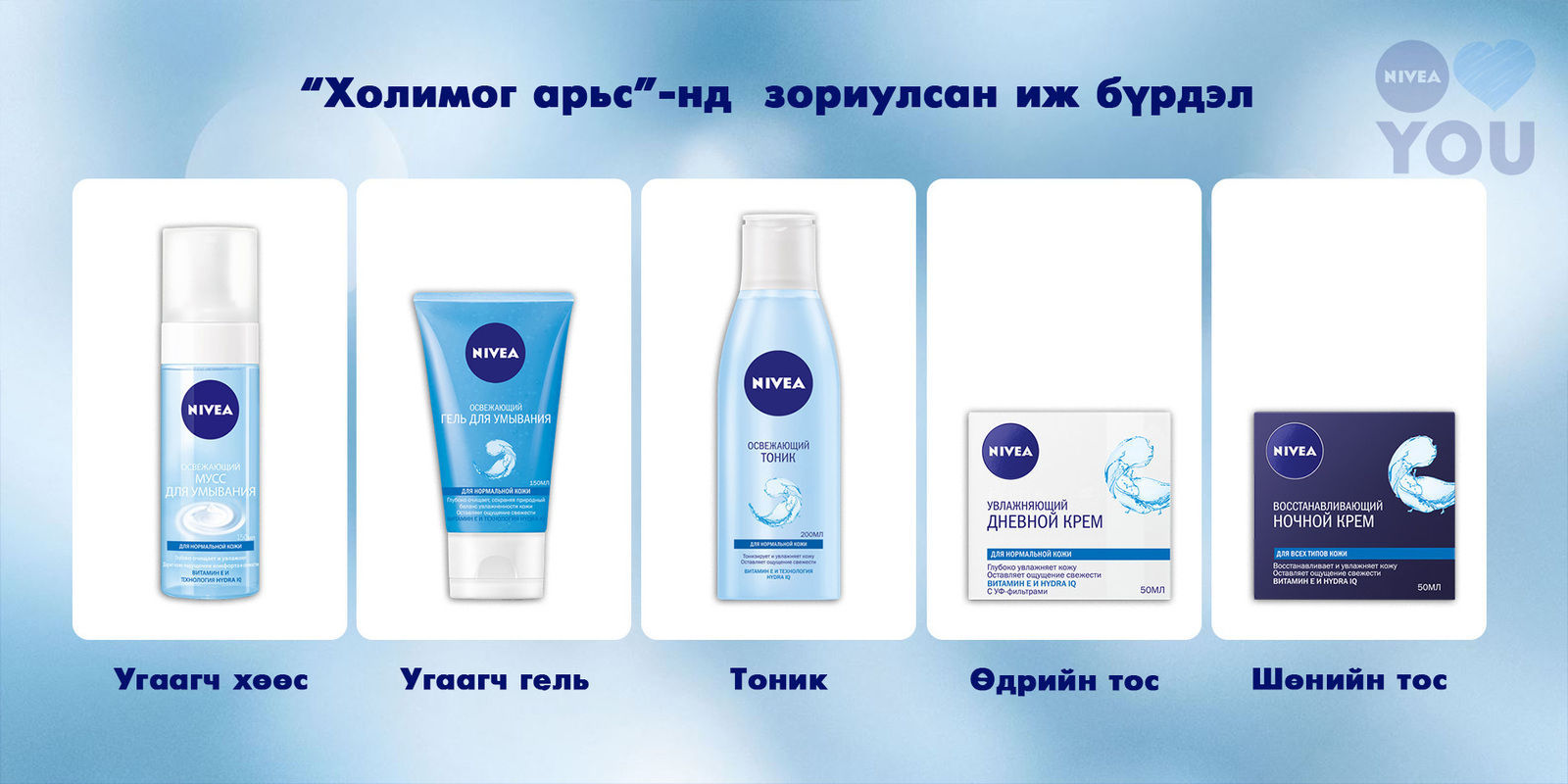 Германы Байрсдорф компаний Nivea брэндийн “Холимог арьс”-нд зориулсан иж бүрдлийг танд санал болгож байна.