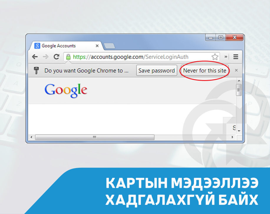 Аливаа хайлтын систем буюу browser автоматаар нэвтрэх нэр, нууц үг гэх мэт мэдээлэл хадгалах сонголттой байдаг. Та өөрийн картын мэдээллийг хадгалснаар, таны компьютерт нэвтэрч буй хэн ч байсан таны картын мэдээллийг ашиглах боломжтой болох тул гүйлгээ хийхдээ картын мэдээллээ хадгалахгүй байх нь чухал юм.