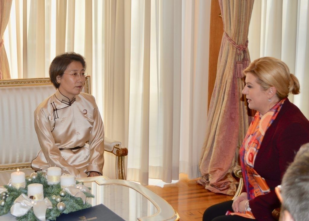 Ерөнхийлөгч Колинда Грабар Китарович Элчин сайдыг хүлээн авч уулзаж, Монгол, Хорватын хамтын ажиллагааны асуудлаар ярилцлаа. Уулзалтын үеэр Элчин сайд Г.Баттунгалаг Монгол Улсын Ерөнхийлөгчийн мэндчилгээг уламжилж, хоёр талын харилцааг эдийн засаг, боловсрол, аялал жуулчлал зэрэг салбарт өргөжүүлэн хөгжүүлэх эрмэлзэлтэй байгаагаа илэрхийллээ.
