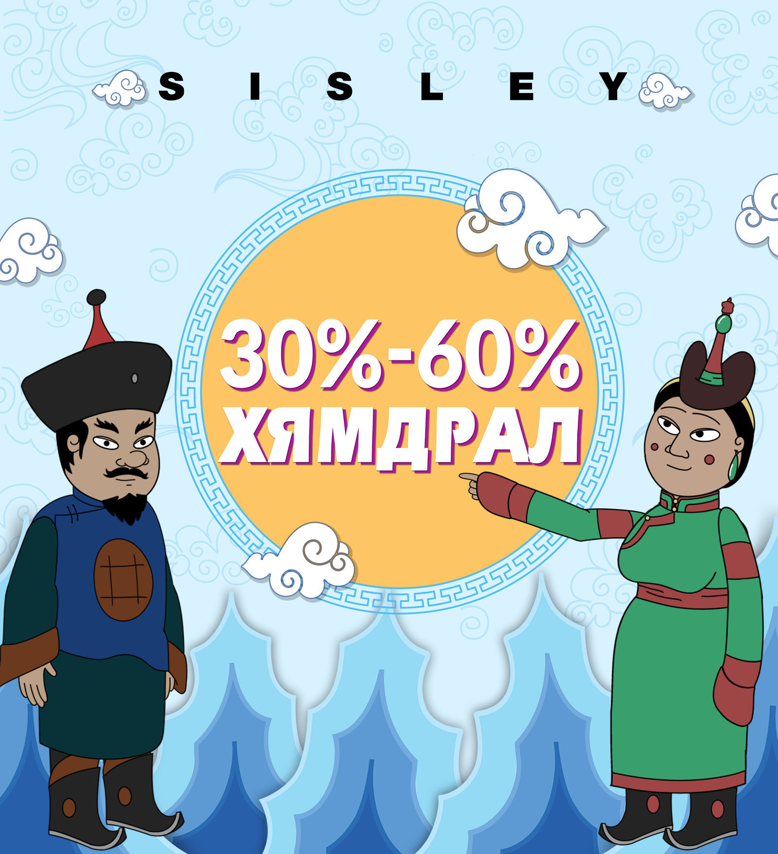 Залуусын алдарт Sisley брэндийн эрэгтэй, эмэгтэй бүх загварууд, Италийн №1 хүүхдийн брэнд Chicco 30-60%, тансаг зэрэглэлийн гутлын брэндүүд болох Luisa Spagnoli, Cerruti, Civas болон Salamander, Bugatti, Moda da fausto, Imac, Nero giardini, Caprice, Nila&Nila зэрэг гуталнууд бүгд 20-50% хямдарлаа.