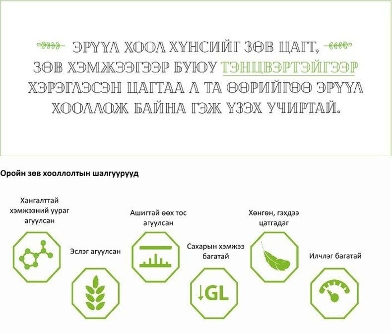 Дан ганц эрүүл хүнс хэрэглэхийг зөв хооллолт гэвэл өрөөсгөл ойлголт болно. Эрүүл хоол хүнсийг зөв цагт, зөв хэмжээгээр буюу тэнцвэртэйгээр хэрэглэсэн цагтаа л та өөрийгөө эрүүл хооллож байна гэж үзэх учиртай.
