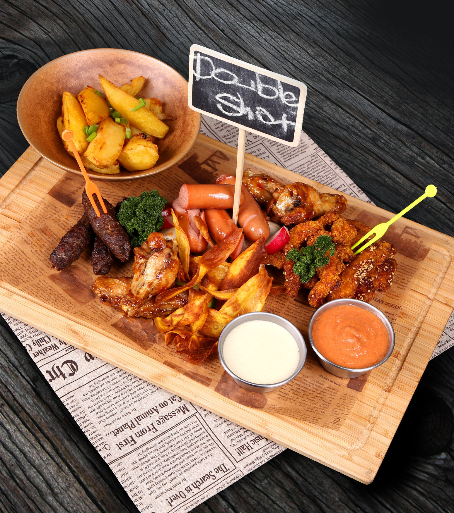 Тухайлбал, B52 зэрэг шот коктейль, Manhattan, Negroni, Whiskey Sour гэх мөстэй, тэр дундаа том том шоо хэлбэрийн мөстэй коктейль, Long Island зэрэг маш олон орцтой коктейлиуд, Мартини, Маргарита төрлийнх гэх мэтчилэн олон төрлийн коктейлийн амтыг “Double Shot”-оос мэдэрч болно.