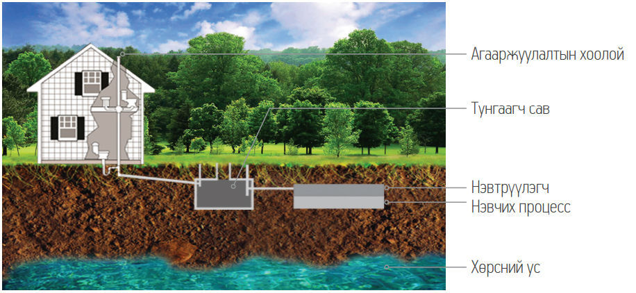 Олон жилийн туршлагаас харахад нутаг болгонд янз бүрийн байдлаар шийдвэрлэдэг. Энэ нь байгаль цаг уурын онцлог, хөрсний бүтэцтэй холбоотой. Тухайлбал, хөрсний доор 3-4 метрийн гүнд полиэтилен хуванцар септик танкийг байрлуулж анаэробик технологиор шийдвэрлэдэг. Өөрөөр хэлбэл, полиэтилен саванд агааргүй орчин бий болдог. Хүчилтөрөгчгүй орчинд анаэробик бактер л ганцаараа амьдрах чадвартай. Анаэробик бактер бусад бүх хортой, хоргүй бактерийг идэж устгадаг. Полиэтилен саванд цэвэршүүлж бохироос ялгарсан саарал усыг хөрс руу нэвчүүлдэг.