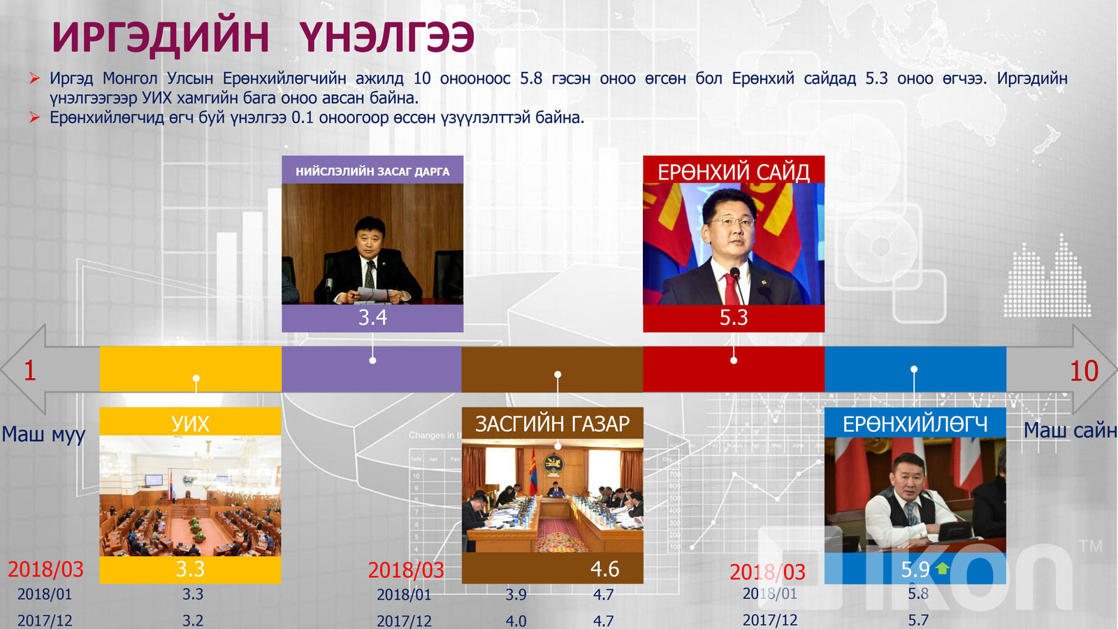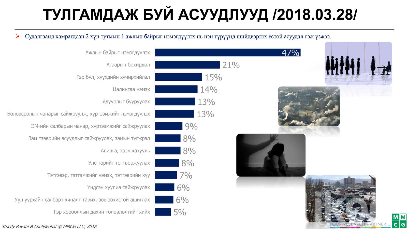 Судалгааны MMCG байгууллагын сар бүр хийдэг Олон нийтийн санаа бодлын хамгийн сүүлийн судалгааны дүн нэгтгэгдэн гарчээ.