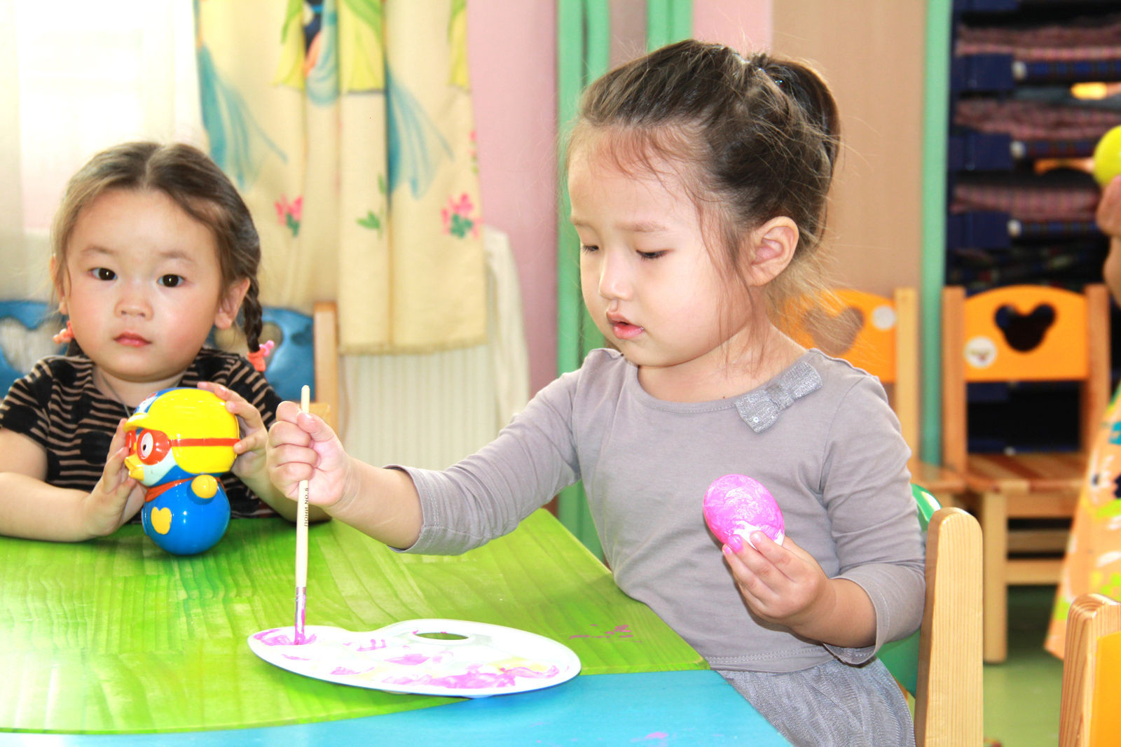 Хэт их пластик тод өнгөтэй зүйлс хүүхдийн анхаарлыг хүчтэй татдаг. Харин 1-3 зөөлөн өнгөнөөс бүрдсэн орчинд хүүхэд өрөөний элдэв тод зурганд биш ажиллах эд хэрэглэл эсвэл тоглоомондоо бүрэн анхаарлаа төвлөрүүлж чаддаг.