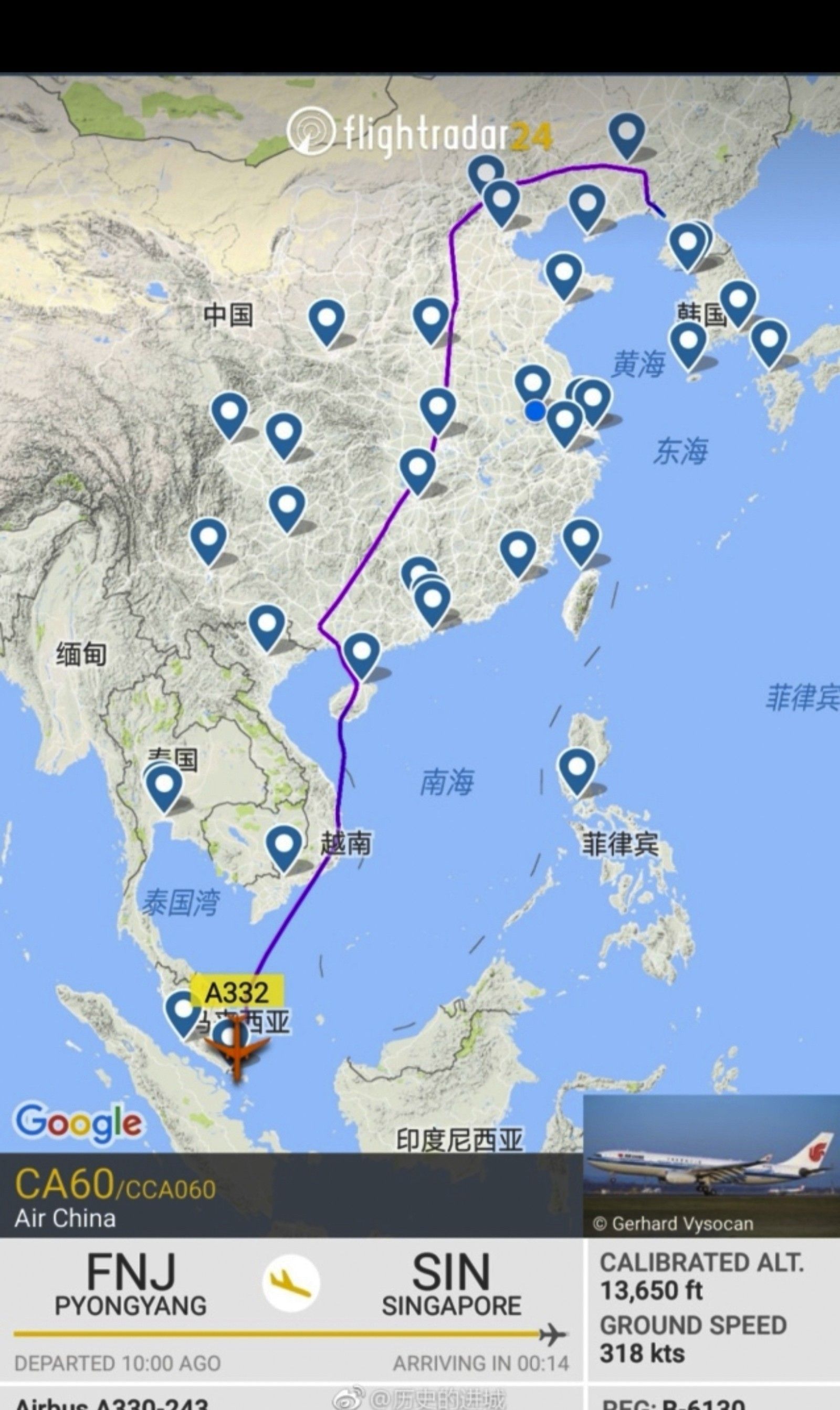 Бямба гарагт Хятадын бас нэг онгоц Пёньянаас Сингапурыг зорьсон тухай Flightradar24 сайтад мэдээлжээ. Энэ онгоцоор албаны бусад хүмүүс зорчсон байж магадгүй.