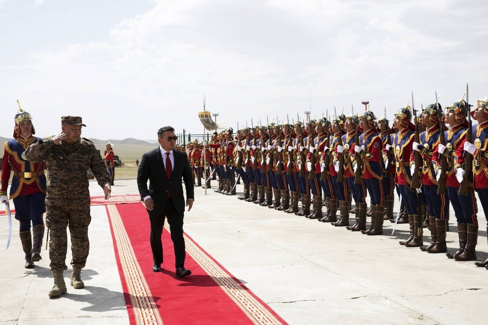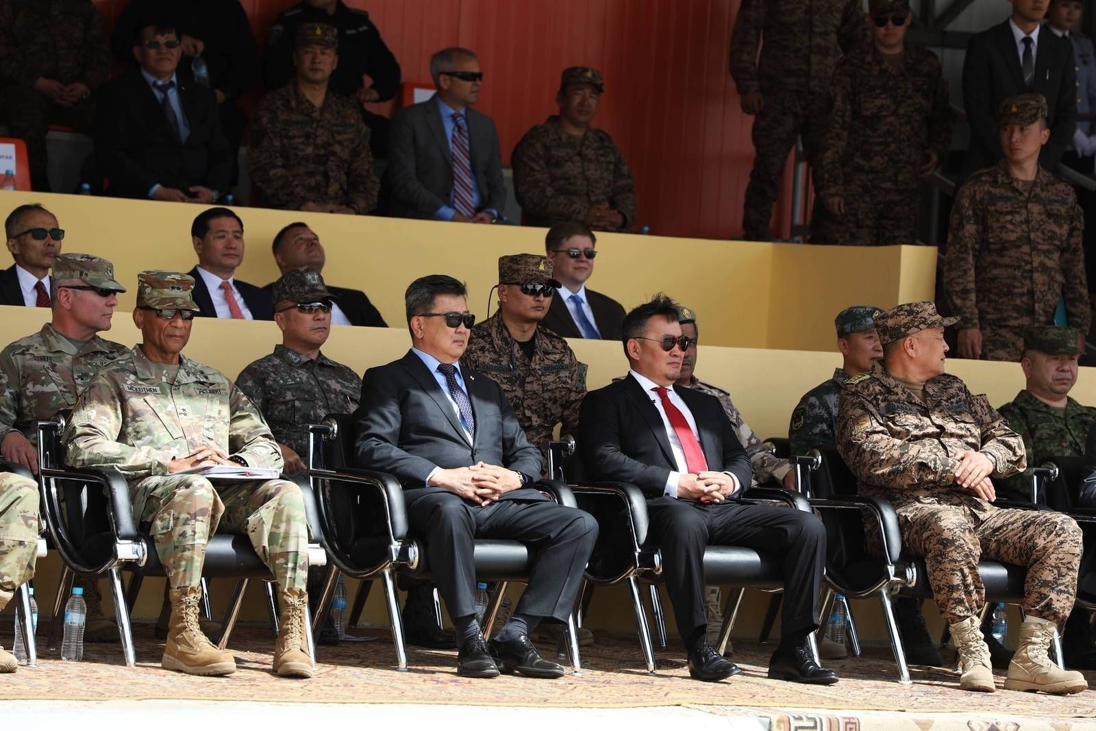 “Хааны эрэлд”-2018 энхийг дэмжих ажиллагааны олон улсын хамтарсан сургуульд оролцох бие бүрэлдэхүүн бэлэн жагсаж, Монгол Улсын Ерөнхийлөгч Х.Баттулга 26 улсын цэргийн баг, бие бүрэлдэхүүнтэй мэндчилж, улс бүрийн төлөөлөгчидтэй гар барин мэндчилэв.