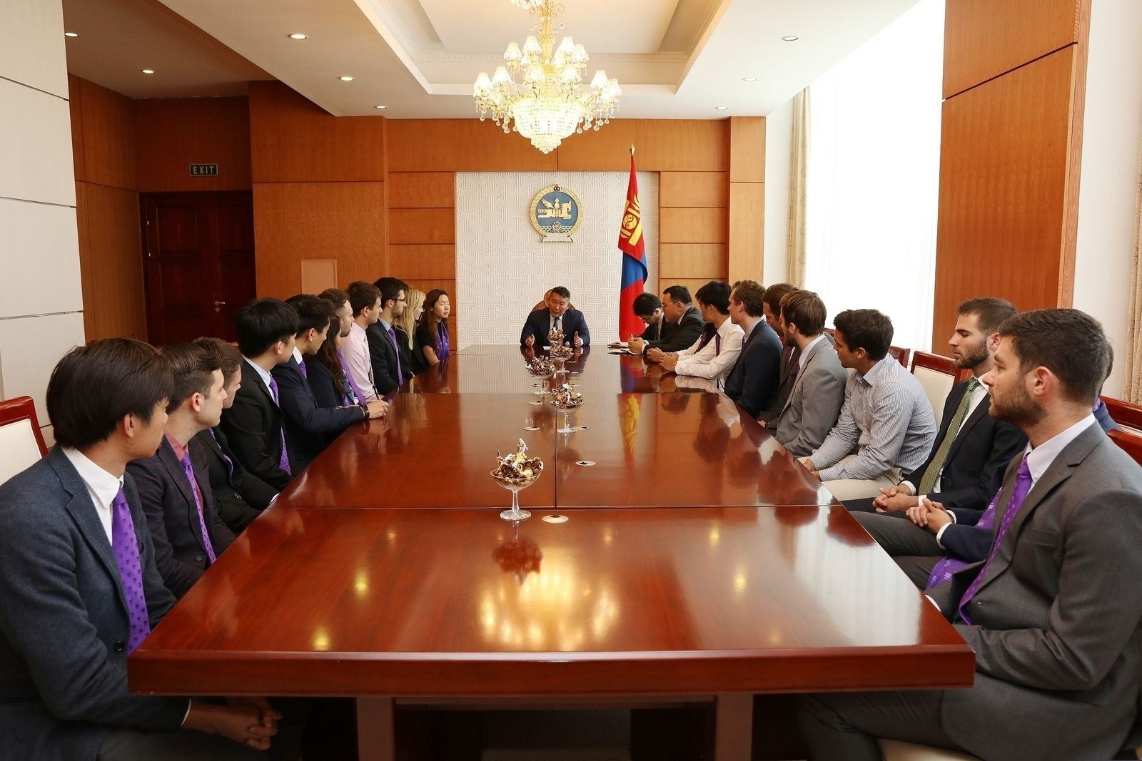 Уулзалтын эхэнд оюутнууд Монгол Улсын Ерөнхийлөгч Х.Баттулгад хандан цаг гарган хүлээн авч уулзсанд нь талархаад, хөтөлбөрийн хүрээнд Азийн орнуудаар аялж, тухайн орны бизнес, Засгийн газар болон хууль тогтоох дээд байгууллагын төлөөлөгчидтэй уулзаж туршлага судалж байгаа талаараа танилцуулсан юм.