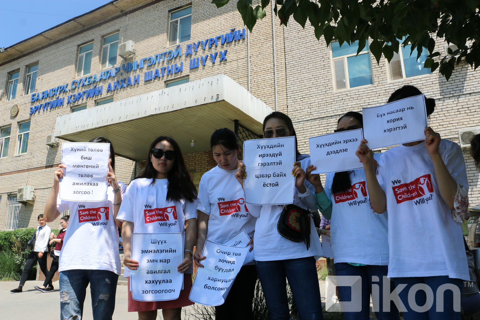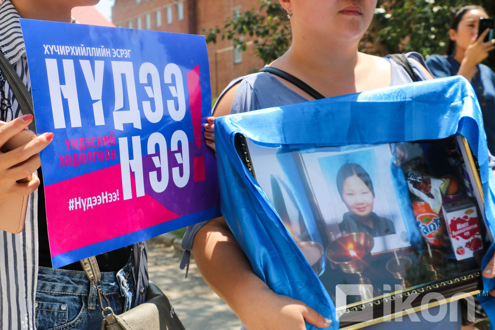 Баянзүрх, Чингэлтэй, Сүхбаатар дүүргийн эрүүгийн хэргийн анхан шатны шүүхэд Очир төвд 13 настай охин амиа алдсан хэргийн шүүх хурал өнөөдөр хаалттай явагдаж байна. Шүүх хурлын танхимын гадаа Лантуун дохио ТББ болон "Холун хатны үрс" ТББ-ын залуучууд хүчирхийллийн эсрэг дуу хоолойгоо нэгтгэхээр иржээ.