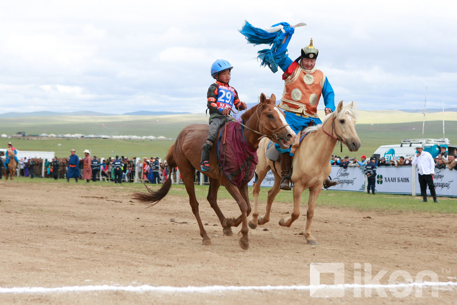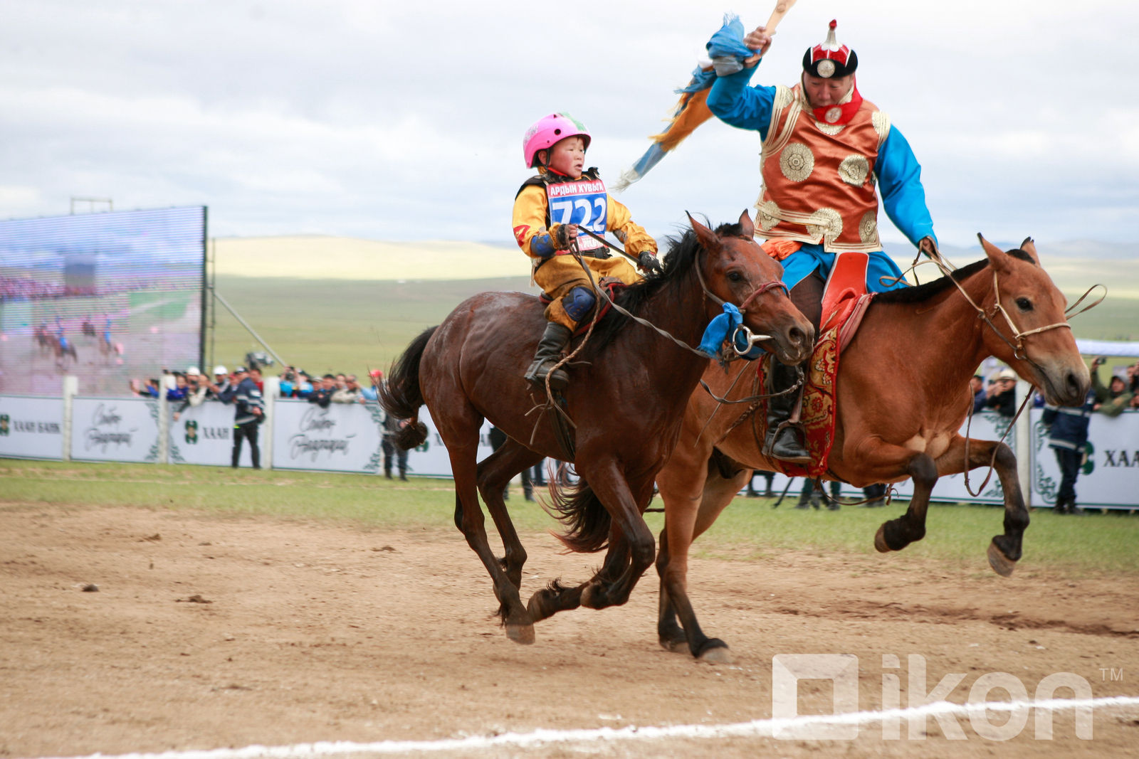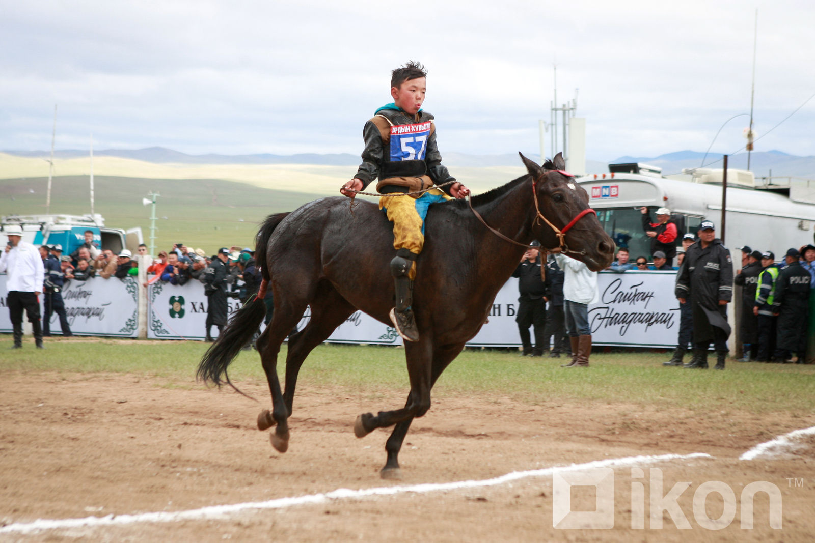 Айргийн тавд Өвөрхангай аймгийн Өлзийт сумын Гончигийн Хадхүүгийн хар үрээ давхиж, унасан хүүхэд, уясан эзнээ баясгалаа.