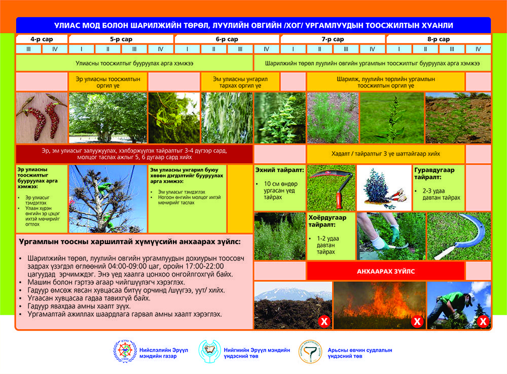 Тухайлбал, модлог ургамлын цэцэглэх хугацаа хавар байдаг. Харин өвслөг ургамлын цэцэглэх хугацаа зун бол хөл газрын ургамлын цэцэглэх тоосжилтын хугацаа нь намар юм. Ялангуяа Монгол оронд хөл газрын ургамал буюу намар цэцэглэдэг ургамлын тоосжилт эрчтэй байдаг. Тиймээс монголчууп хөл газрын ургамлын харшлаар их өвчилж байна.