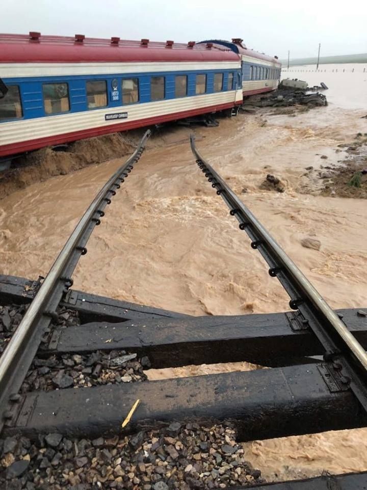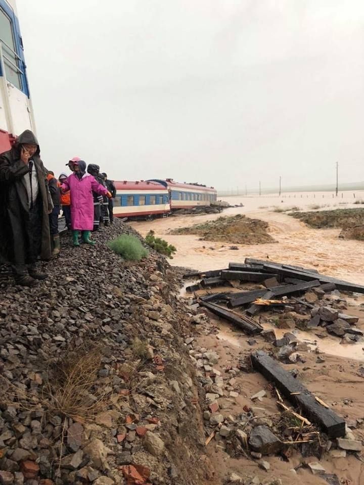 Өнгөрсөн шөнө орсон хүчтэй усархаг аадар борооны улмаас үер бууж Дорноговь аймгийн Цомог -Айраг өртөөний хоорондын замын 747-р км-ын 9-р зуутад Улаанбаатараас Сайншандын чиглэлд явж байсан суудлын 286-р галт тэрэг 04:50 минутын орчим замаас гарлаа. Үүний улмаас галт тэрэгний зүтгүүр унаж, 4 вагон замаас гарсан байна.