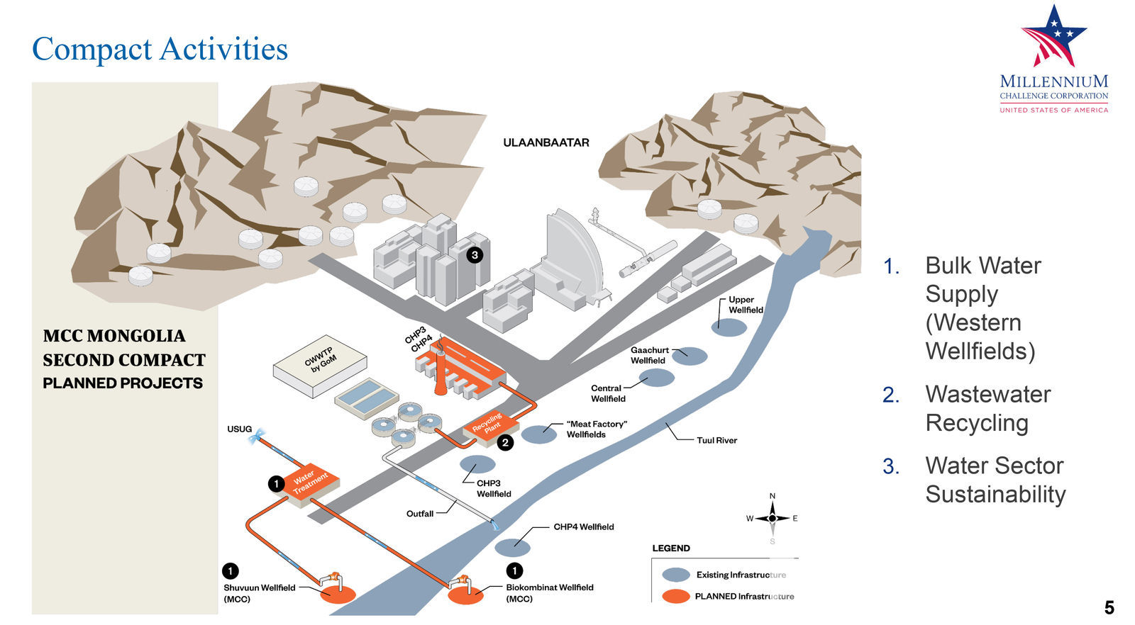 БНХАУ-ын хөнгөлөлттэй зээлээр баригдах Төв Цэвэрлэх Байгууламж МСК-ийн Улаанбаатарын усан хангамжийг нэмэгдүүлэх хөтөлбөр хоёр салшгүй хамааралтай. Монгол Улсын Засгийн газар Төв Цэвэрлэх Байгууламж барих асуудлаар БНХАУ-ын талтай ойлголцсон нь МСК-ийн хөтөлбөр хэрэгжихэд томоохон түлхэц болжээ. Учир нь шинээр баригдах цэвэрлэх байгууламжаас гарах усыг дахин боловсруулах үйлдвэрийг МСК-ийн хөтөлбөрийн хүрээнд мөн хийгдэх юм. Цэвэршүүлсэн хаягдал усыг цахилгаан станцуудын хоёрдогч хэрэгцээг хангах нөхцөл бүрдэж байна. Өнөөдрийн байдлаар Улаанбаатарын нийт усны хэрэглээний тавны нэг орчим хувийг цахилгаан станцууд ашиглаж байгаа бөгөөд станцууд гүний цэвэр усыг хоёрдогч хэрэгцээндээ ашиглаж ирсэн нь нөөц хомсдож буй манай улсын хувьд дэндүү тансаг хэрэглээ байсан билээ.