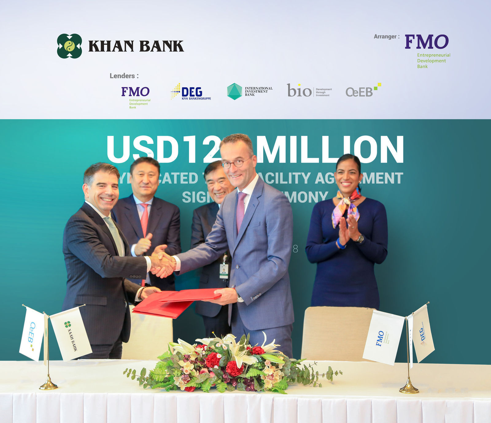 Нидерландын Хөгжлийн Банк (FMO)-наас дэлхийн нэр хүндтэй дөрвөн хөгжлийн банктай хамтран ХААН Банкинд 120 сая ам.долларын урт хугацааны зээлийн санхүүжилт олгох гэрээг ХААН Банкны Гүйцэтгэх захирал Жон Белл, Нидерландын Хөгжлийн Банкны хөрөнгө оруулалт хариуцсан ахлах мэргэжилтэн Дейв Смит нар үзэглэлээ. Энэхүү ёслолын арга хэмжээнд Монголбанкны удирдлагууд, ХААН Банкны ТУЗ-ийн дарга ноён Хидео Савада, “Таван Богд” группийн ерөнхийлөгч Ц.Баатарсайхан тэргүүтэй ТУЗ-ийн гишүүд оролцлоо.