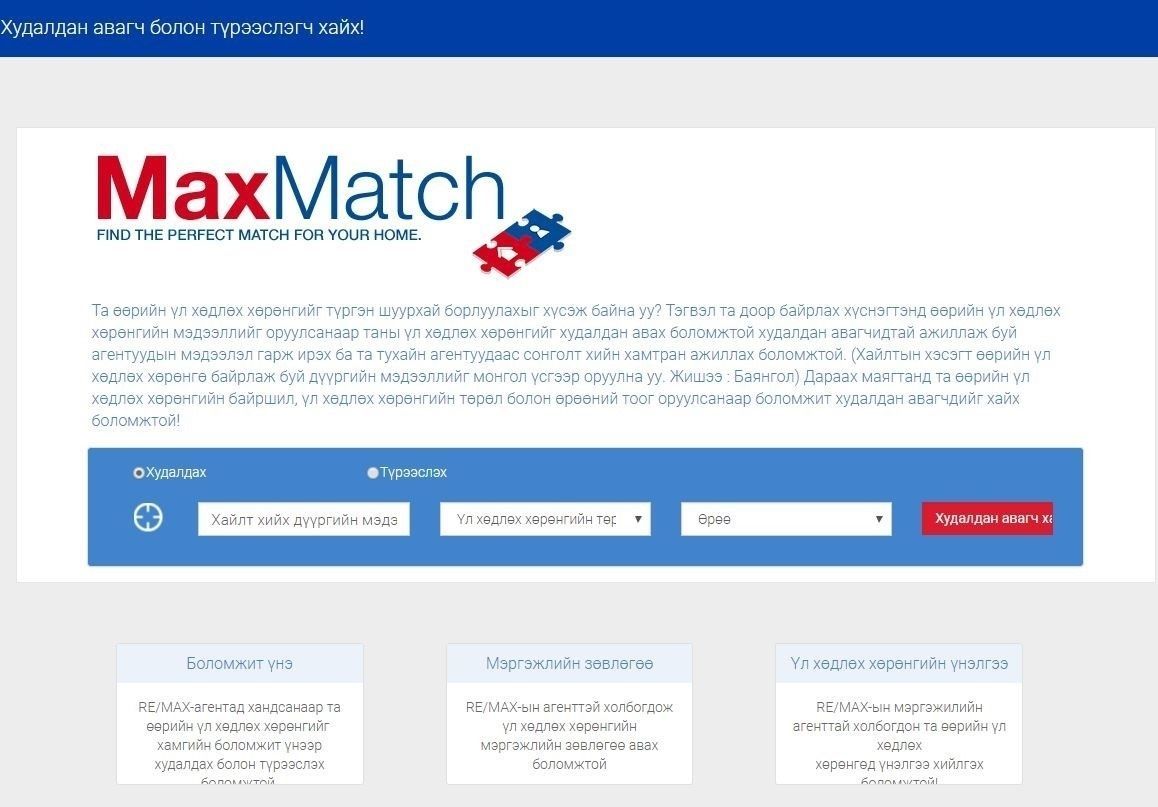 Мөн RE/MAXчууд хэрэглэгч нартаа зориулан хайж буй үл хөдлөх хөрөнгүүдтэй ажиллаж буй агентуудыг харуулдаг хамгийн сүүлийн үеийн технологиор хийгдсэн MAXMATCH цэсийг мөн хайлтын системдээ оруулжээ.