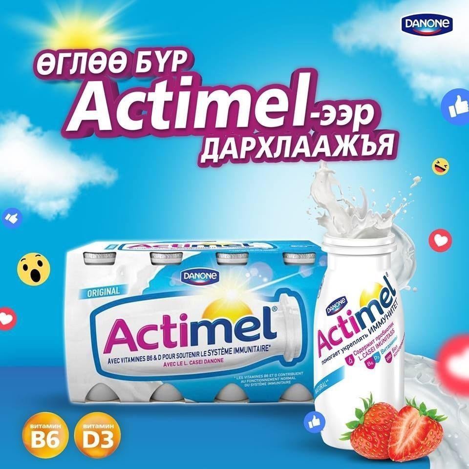 Актимелийг үйлдвэрлэгч Danone нь дэлхийн хэмжээнд эрүүл хоол хүнс үйлдвэрлэгч шилдэг компанийн нэг. Дэлхийд сүү, сүүн бүтээгдэхүүний үйлдвэрлэл ба худалдаагаар нэгдүгээрт эрэмблэгддэг. Актимел нь В,C болон Д аминдэмээр баяжуулсан, хүний биеийн дархлааг дэмжигч L.Casei Immunitass лактобактери агуулсан тараган ундаа юм. Энэ нь хүний биеийг халдвар авахаас сэргийлж, боловсроогүй хоол хүнс, хорт бодисыг биеэс гадагшлуулж, дархлааг дэмждэг. Аль ч насныхан хэрэглэхэд тохиромжтой. Ялангуяа ходоод, гэдэс нь хямардаг, антибиотик, эмийн хэрэглээ их, мэс засалд орсон хүмүүс хэрэглэхэд дархлаа дэмжин, биеэс хорт бодисыг гадагшлуулан, дархлаа дэмжих давуу талтай. Хүүхдүүд ч дуртай уудаг болохоор урамтай. Тараган ундаанаас та 1 ширхэгийг уухад өдөрт авах хэрэгцээнийхээ 15 хувийг авч чадна. Тогтмол хэрэглэвэл дархлаа сайжирч, ханиад томуу тусах нь багасдаг юм.