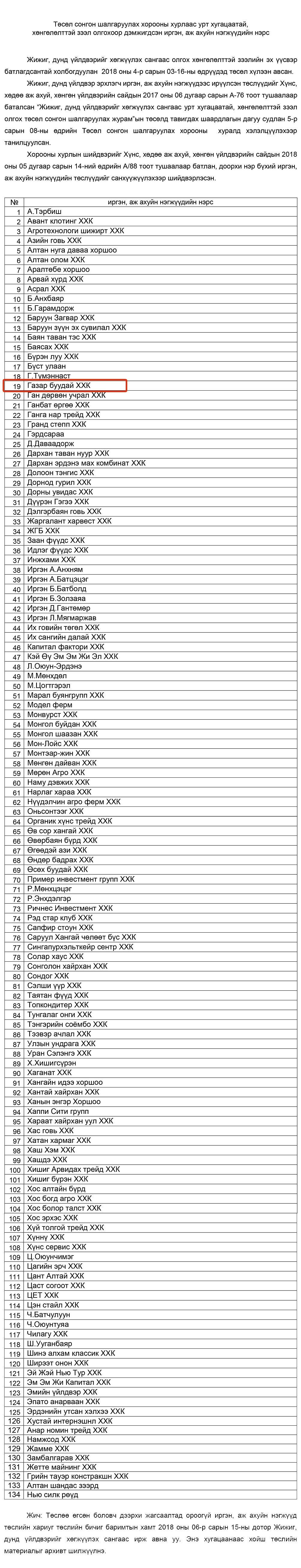 Тэгвэл ЖДҮХС -аас 2018 онд зээл авсан 134 компанийн жагсаалтад түүний "Газар Буудай" ХХК 950 сая төгрөгийн зээл авсан мэдээлэл багтсан нь олон нийтийн сүлжээнд тараад байгаа юм.