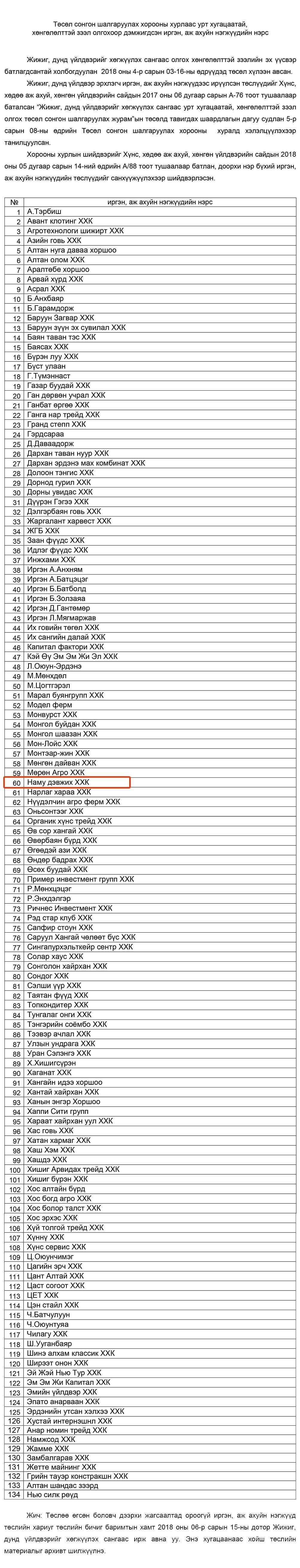Баримт 1: 2018 онд ЖДҮДС-аас зээл авсан компаниуд /Хүснэгтийн 60 дугаарт "Наму Дэвжих" ХХК байна/