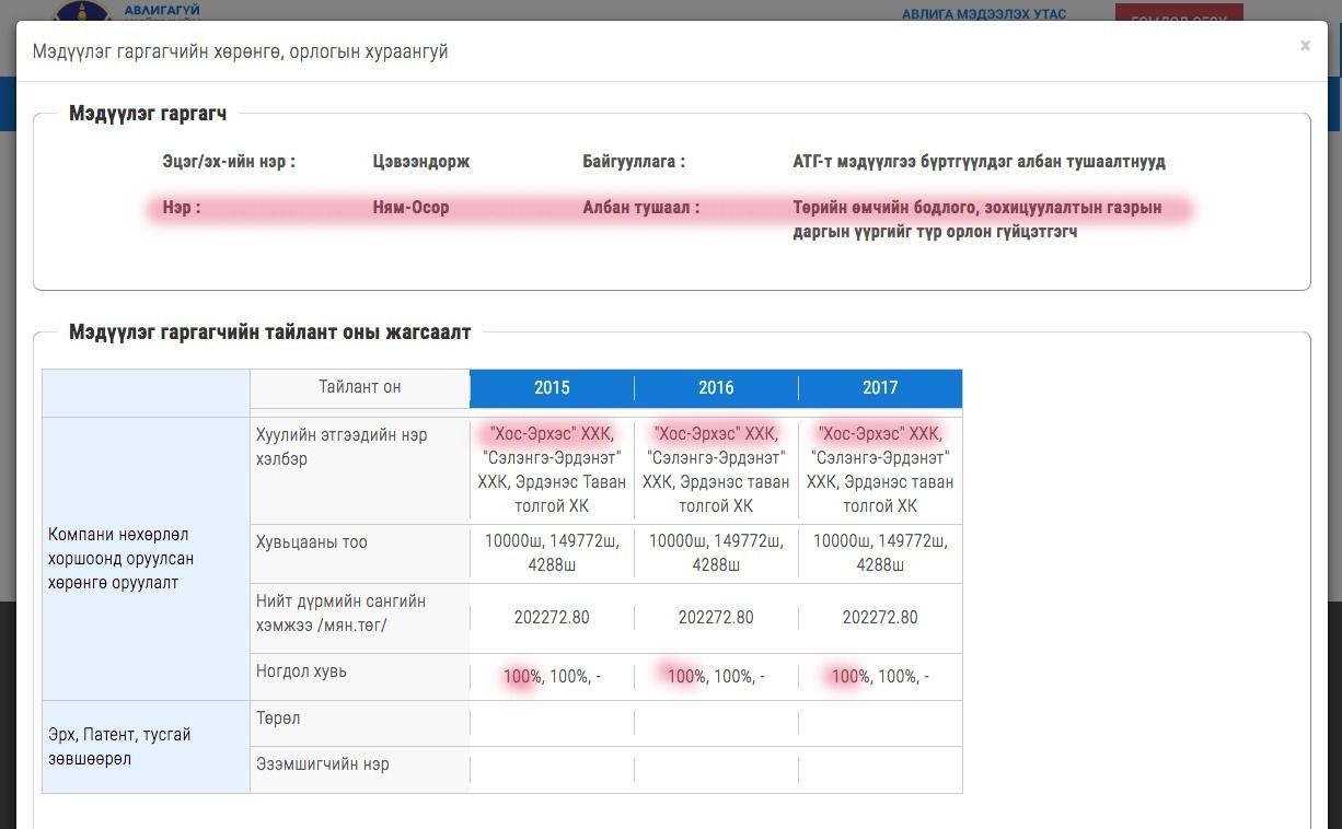 Баримт 2, Ц.Ням-Осорын хөрөнгө орлогын мэдүүлэг, Эх сурвалж: АТГ