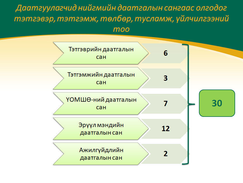 Нийгмийн даатгалын шимтгэлд албан журмаар даатгуулагч таны төлсөн шимтгэлийн дийлэнх нь Тэтгэврийн даатгалын сан руу шилждэг.