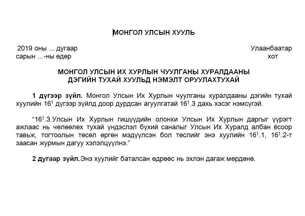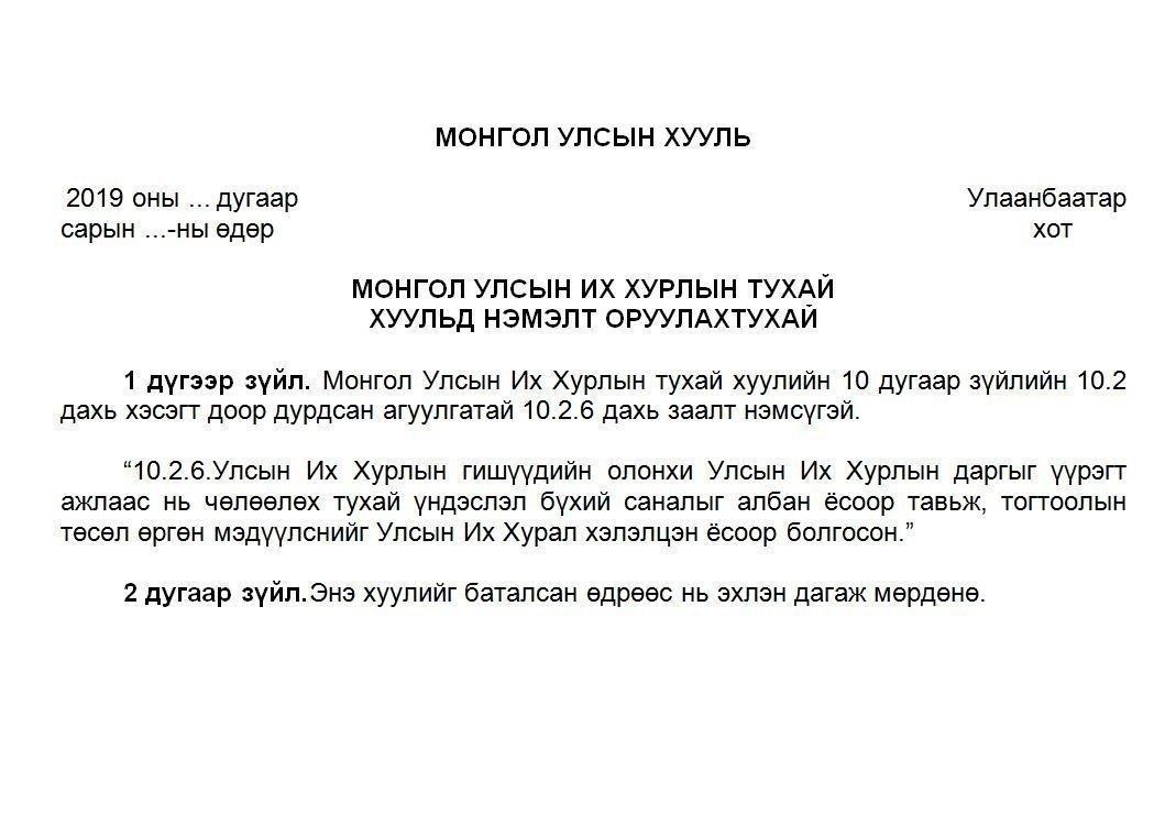 Ерөнхийлөгчийн өргөн барьсан хуулийн төсөл: