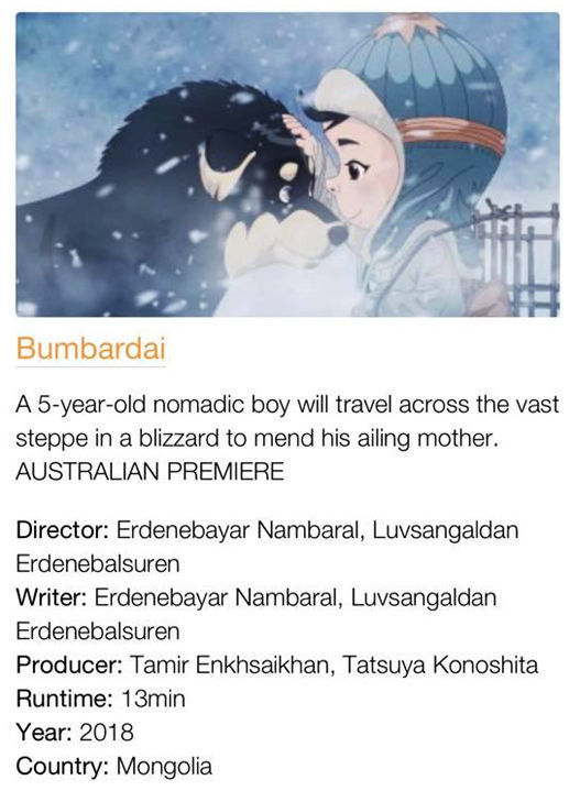 Бумбардай хүүхэлдэйн кино 2019 оны нэгдүгээр сарын 15-нд Австралийн кино фестивальд тавигджээ.