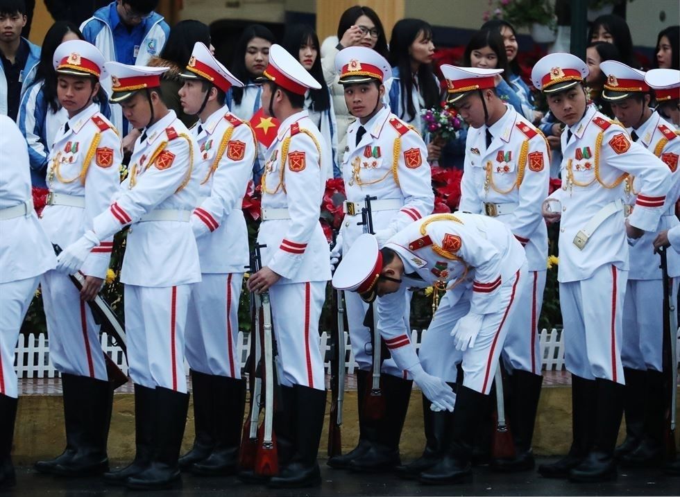 Хятадын хилээс өмнө зүгт хэдхэн километр зайтай орших Дон Дан өртөөний харуул хамгаалалтыг чангатгаж, хүндэт харуул, цэргийн найрал хөгжмийн баг жагсжээ.