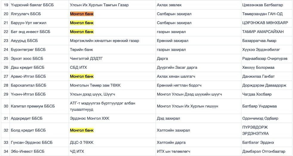 Монголбанканд ажилладаг хэрнээ ББСБ-тай гэж хайлтаар гарч ирсэн хүний нэрс: