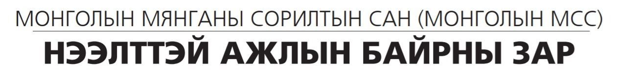 Монголын МСС нь мэргэжлийн зохих ур чадвар, ажлын туршлага бүхий дараах ажилтнуудыг сонгон шалгаруулахаар зарлаж байна.