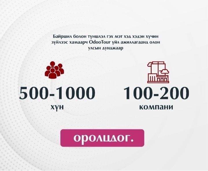 Оdoo 12 Tour үйл ажилгааны хүрээд: