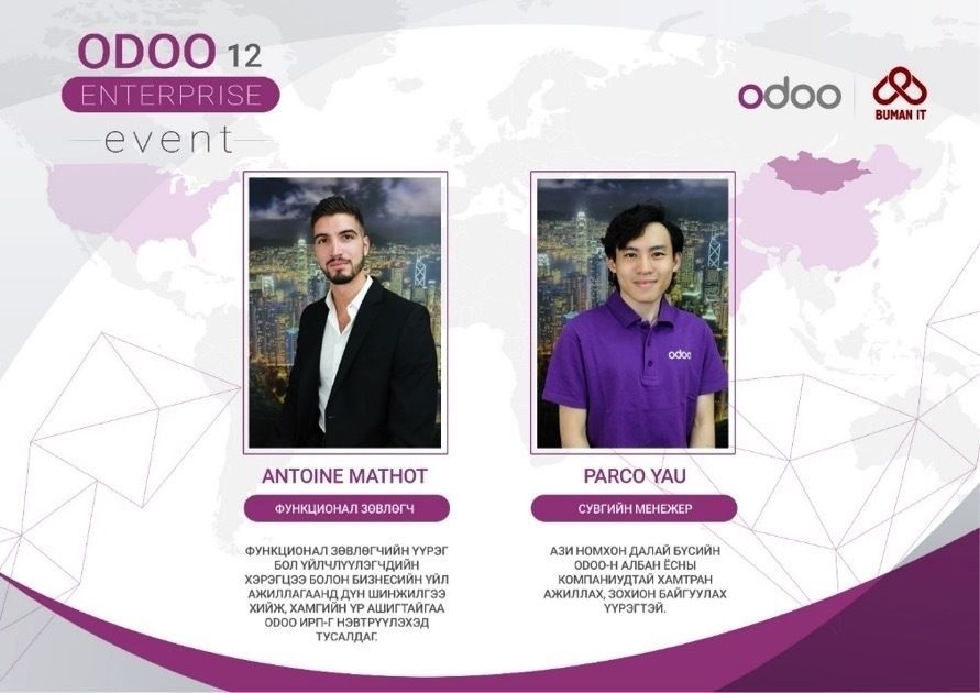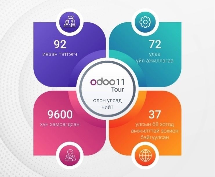 Монгол улс дахь анхны Odoo tour арга хэмжээг манай орон дахь Odoo-н албан ёсны түнш “Буман Айти” ХХК-ний тусламжтайгаар 2019 оны 6 сарын 12-ны өдөр зохион байгууллаа.