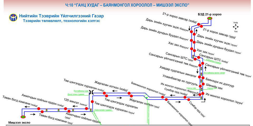 Мөн нийтийн тээврийн үйлчилгээний БММЗ нэрийн эцсийн зогсоолоор дайран өнгөрдөг чиглэлийн тээврийн хэрэгслүүдийн хөдөлгөөний аюулгүй байдлыг хангах үүднээс 2019 оны долоодугаар сарын 24-ний өдрөөс эхлэн Мишээл экспо хүртэл сунгаад байна.