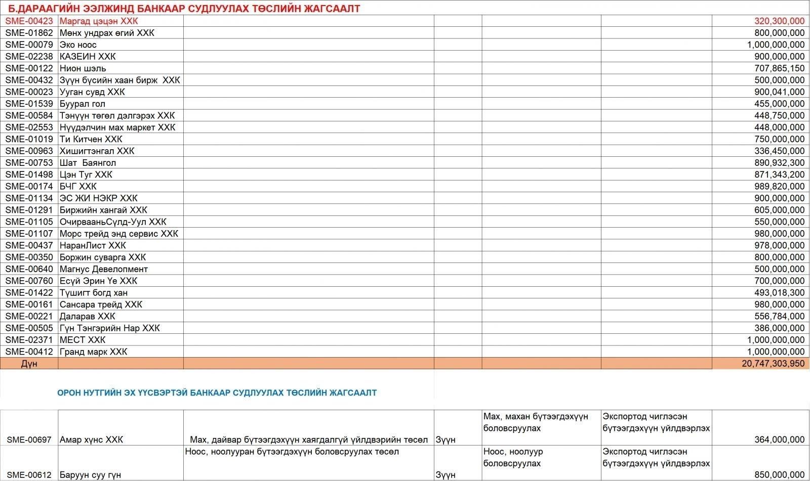 Жижиг, дунд үйлдвэрийг хөгжүүлэх сангаас урт хугацаатай, хөнгөлөлттэй зээл олгох, төсөл сонгон шалгаруулах журмын хүрээнд 300.0 сая төгрөгнөөс дээш 1.0 тэрбум төгрөгийн зээл хүссэн нийт 65 иргэн, аж ахуйн нэгжийн 47.4 тэрбум төгрөгийн зээлийн хүсэлт ЖДҮХСанд судлагдсан билээ.