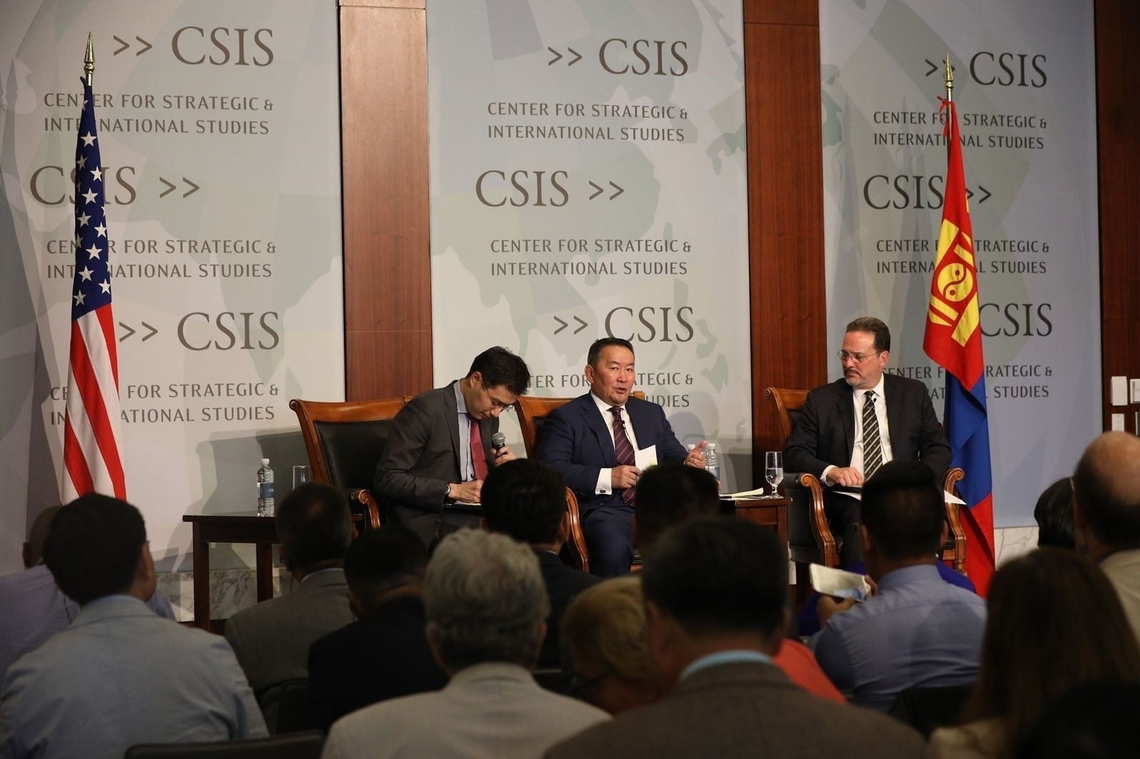 Монгол Улсын Ерөнхийлөгчийг хоёр улсын харилцааны талаар үг хэлсний дараа Стратеги, олон улсын судалгааны төвийн Тэргүүн дэд захирал Майкл Ж.Грийн оролцогчдын дунд хэлэлцүүлэг өрнүүлсэн юм.